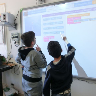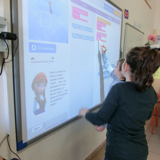 Oggi tutta la mia classe insieme alla maestra è andata in quarta G per lavorare al codice insieme con gli alunni di quella classe. Abbiamo usato il tablet e la lim. Io mi sono divertita molto, anche se il tablet ha impiegato molto tempo per connettersi. È stato utile lavorare tutti insieme. (Carlotta)