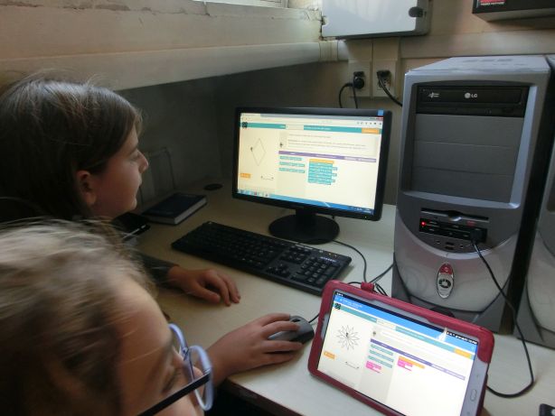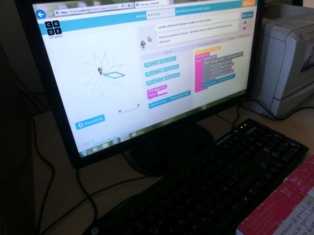 Il coding con l'artista è più difficile nel senso che c'erano varie ampiezze, varie lunghezze e comandi diversi. È più complicato ma anche più divertente. Anche gli altri anni l'abbiamo fatto, e per questo devo ringraziare la nostra fantastica maestra Maria Grazia. (Beatrice A.)